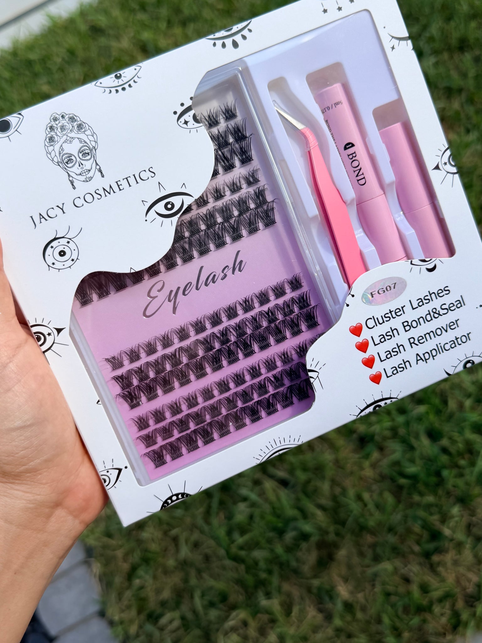 Cluster eyelashes JC Eyelash Extension Kit with Cluster Lashes, Lash Bond & Seal, Lash Remover, and Lash Applicator